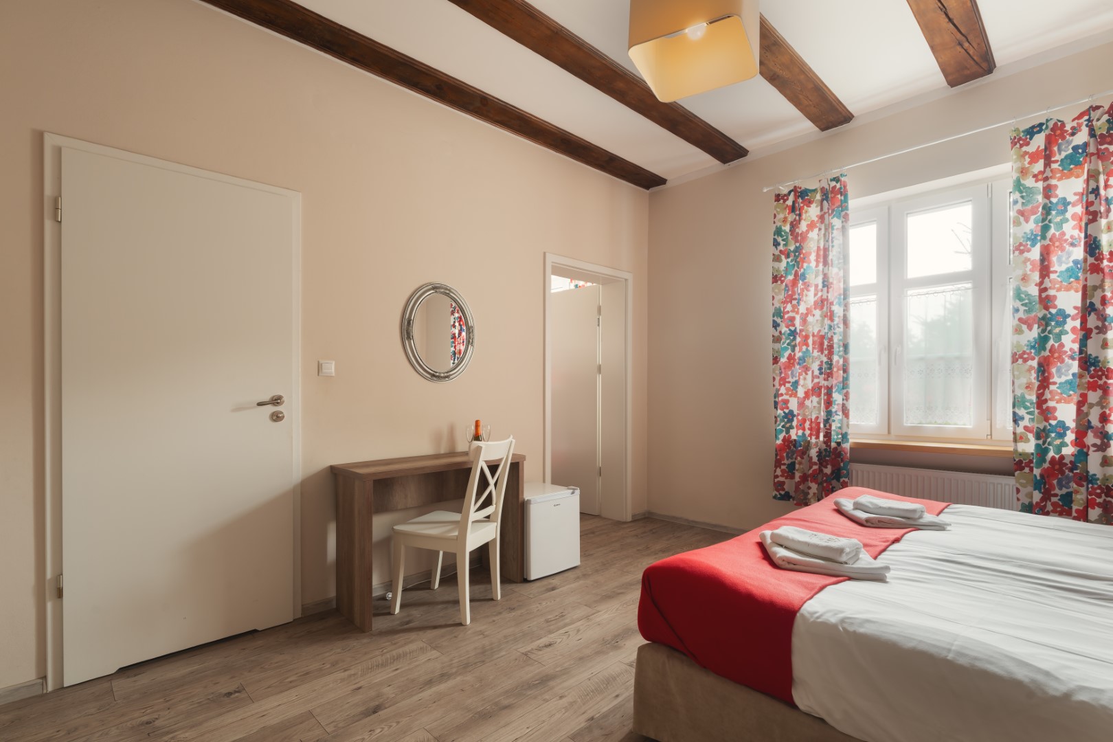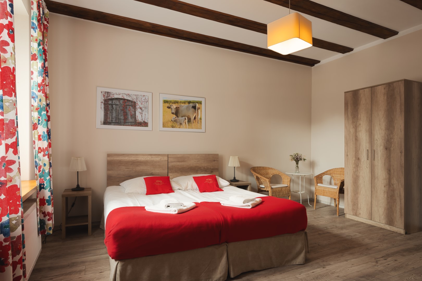 Z okien roztacza się widok na otaczającą zieleń. Aby zapewnić ciszę i komfortowy wypoczynek, w pokoju nie ma telewizora ani radia. Wszystkie pokoje są przyjazne zwierzętom.