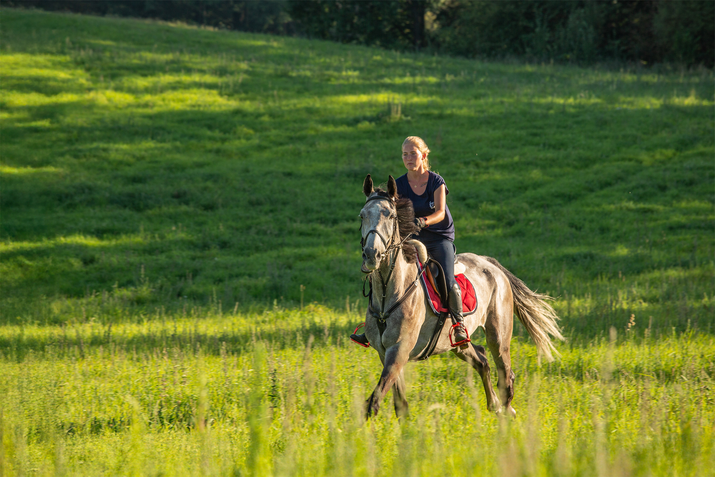 Priorytetem jest dla nas bezpieczeństwo oraz wysoka jakość. Zarówno konie, jak i program nauki dobieramy indywidualnie dla każdego jeźdźca. Udoskonalisz swoją jazdę w stępie, kłusie i galopie, dopracujesz umiejętności na maneżu lub podczas wyjazdu w teren. Do nauki jazdy dla najmniejszych jeźdźców oraz do pracy z końmi przygotowaliśmy round pen.